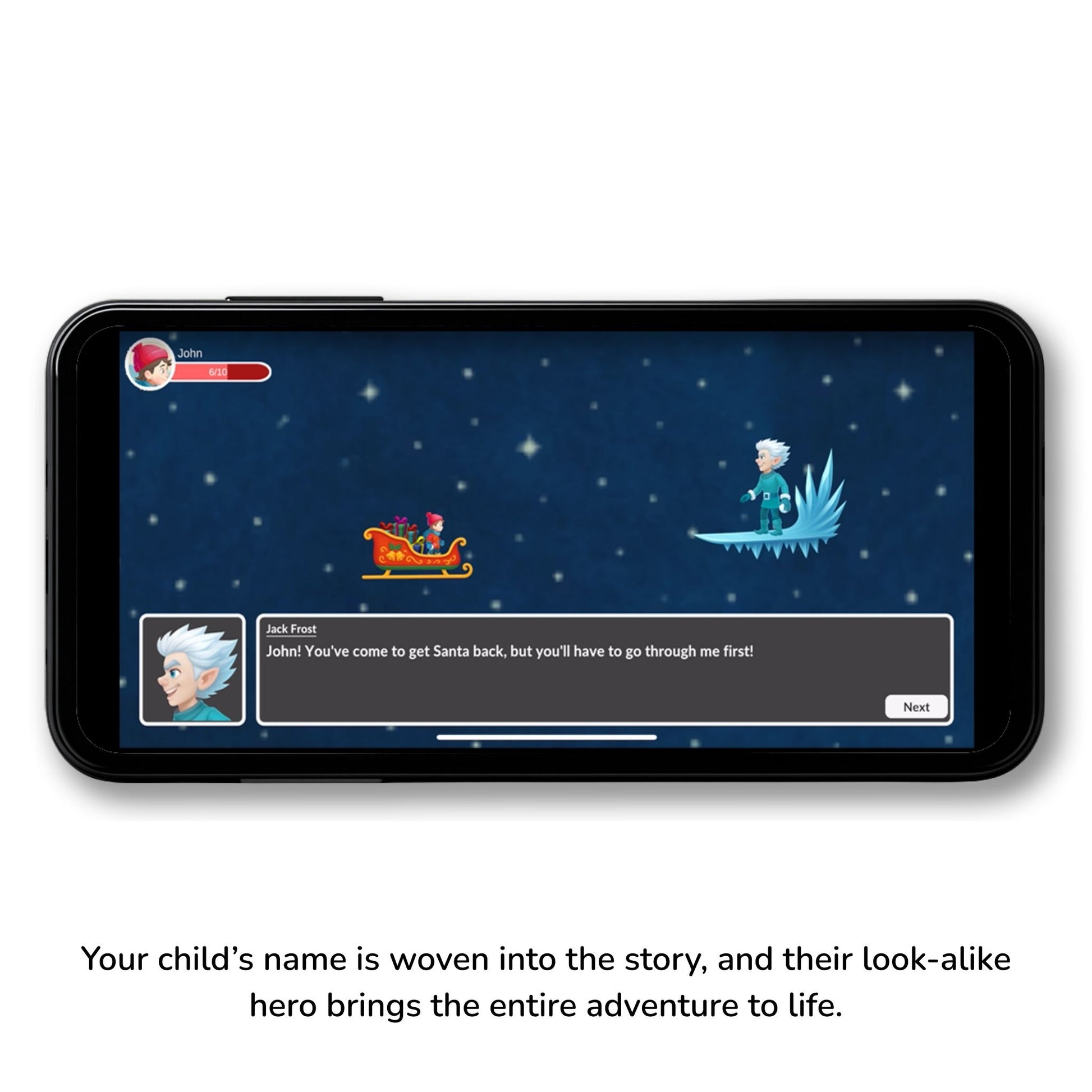 They’ll race through snowy neighborhoods, dodge Frost Goblins, rescue Santa, and help deliver presents around the world — all starring their hero character.